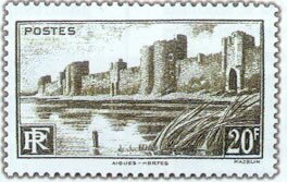 Le 30 octobre 1940, la décision est prise de renouveler les 5 f., 10 f. et 20 f. de la série touristique. Les nouveaux sites sont : l'Hôtel Dieu de Beaune, Aigues-Mortes et un paysage d'Anjou. Ce timbre remplace celui de Saint-Malo (YT 394).
